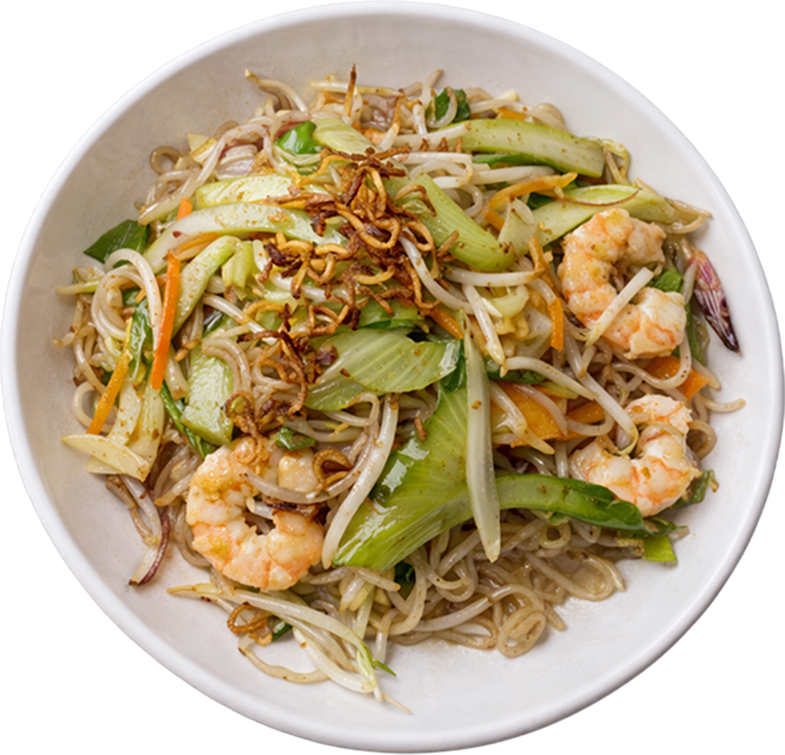 Stir-fry dry pho, pak-choi, bean sprout, and celery with choices of protein: