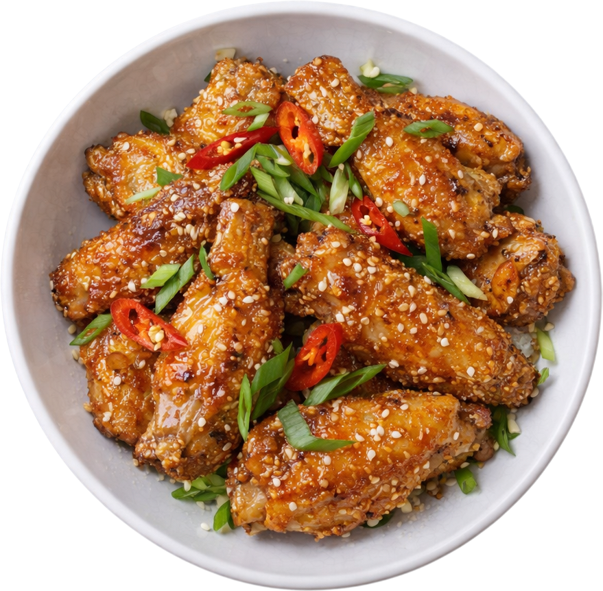 Golden-fried chicken wings glazed in a rich, caramelised fish sauce