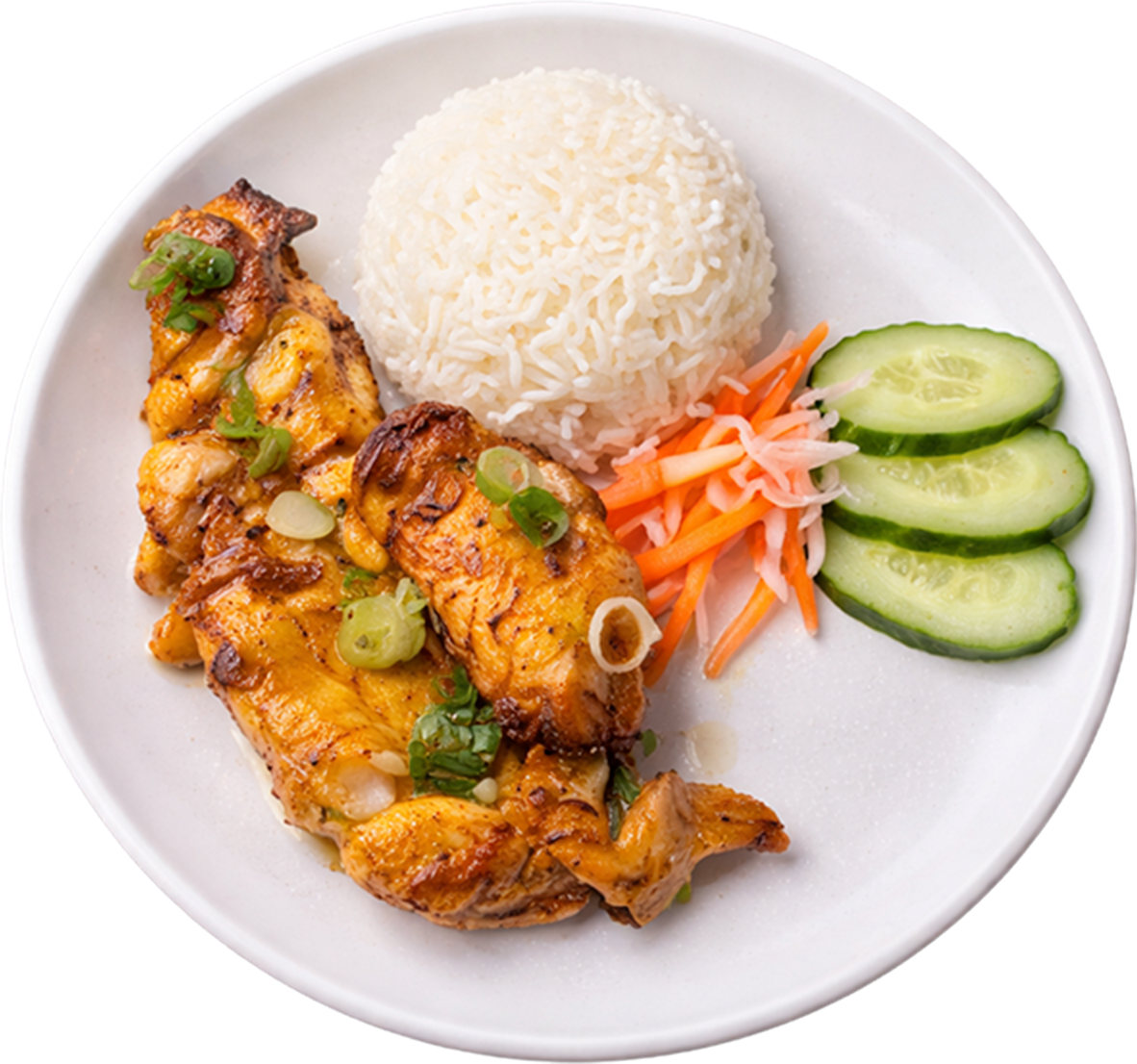 Vietnamese-style marinated chichen served over rice and topped with pickled vegetables