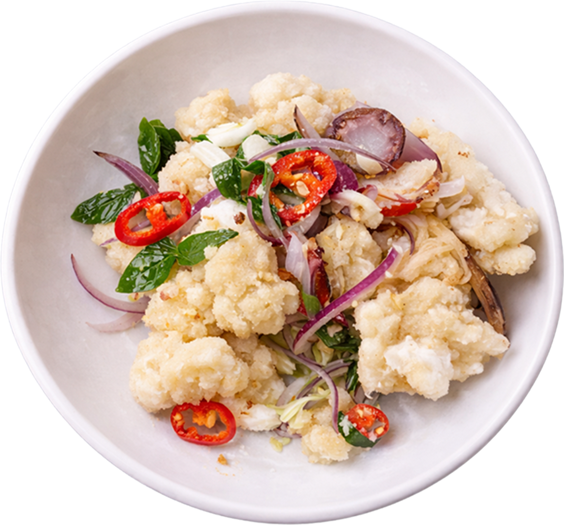 Tender squid lightly battered and fried, tossed wit salt, garlic, and chilli – a classic Vietnamese favourite.