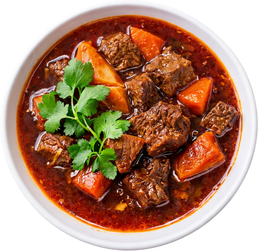 Tender beef chunks simmered in a rich fragrant aromatic infused with star anise, cinnamon and herbs
